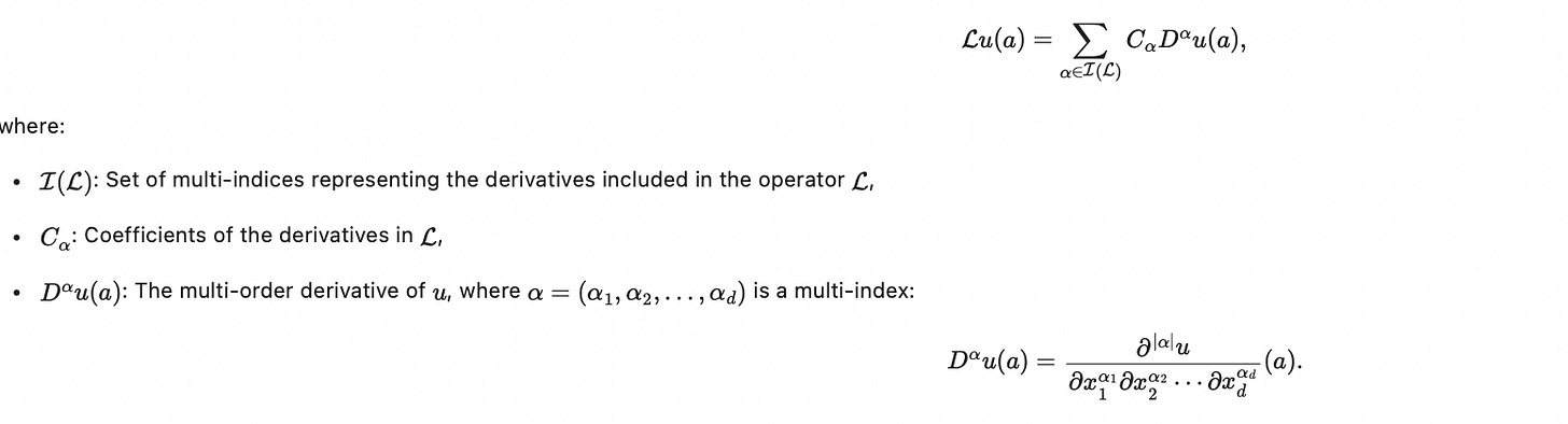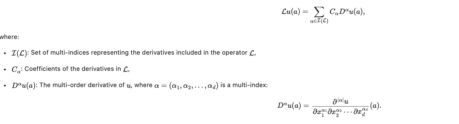 The general form of differential operators are denoted with below equation, where they replace the x and (x-a) of Taylor expansion into coefficients. The details of the equations are shown below: