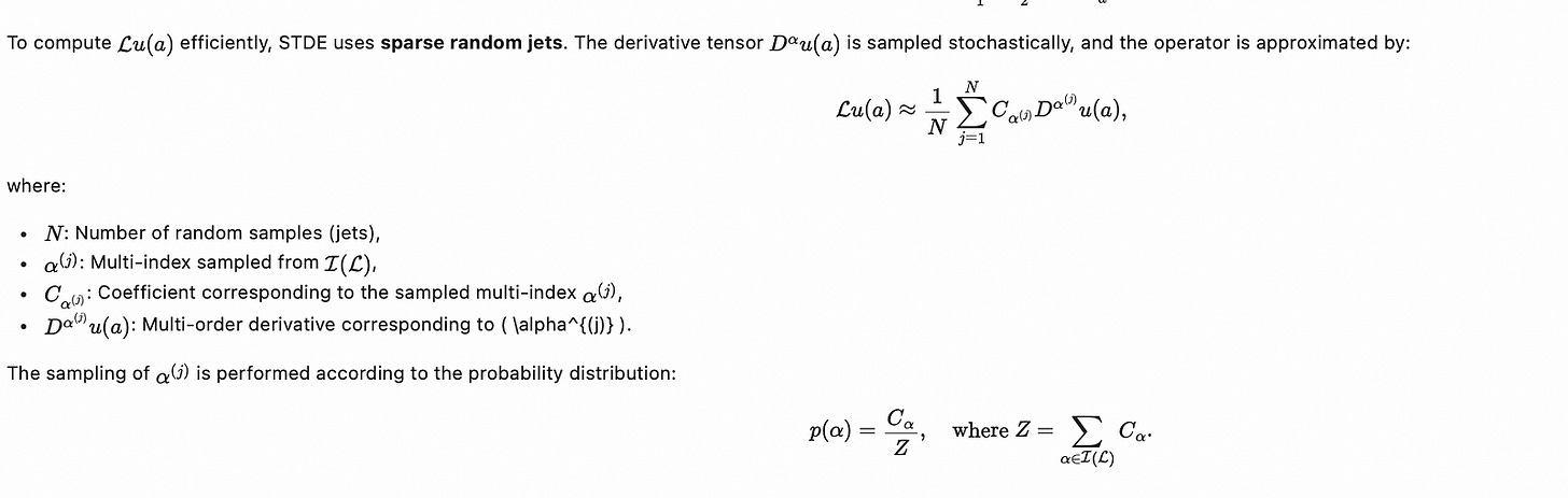 They propose STDE (stochastic taylor derivative estimate) where it approximates the action of differential operator using a sparse, randomized jets.